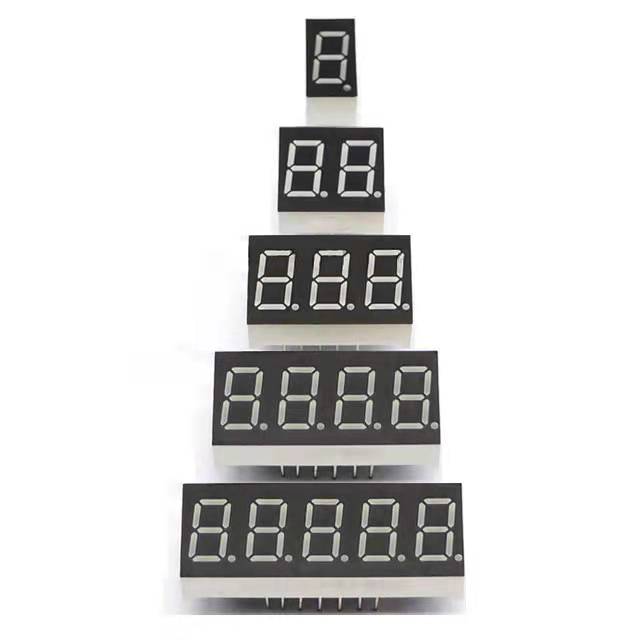 当数码管特定的段加上电压后,这些特定的段就会发亮,以形成我们眼睛看到的字样了。如:显示一个“2”字,那么应当是a亮b亮g亮e亮d亮f不亮c不亮dp不亮。LED数码管有一般亮和超亮等不同之分,也有0.5寸、1寸等不同的尺寸。小尺寸数码管的显示笔画常用一个发光二极管组成,而大尺寸的数码管由二个或多个发光二极管组成,一般情况下,单个发光二极管的管压降为1.8V左右,电流不超过30mA。发光二极管的阳极连接到一起连接到电源正极的称为共阳数码管,发光二极管的阴极连接到一起连接到电源负极的称为共阴数码管。常用LED数码管显示的数字和字符是0、1、2、3、4、5、6、7、8、9、A、B、C、D、E、F。